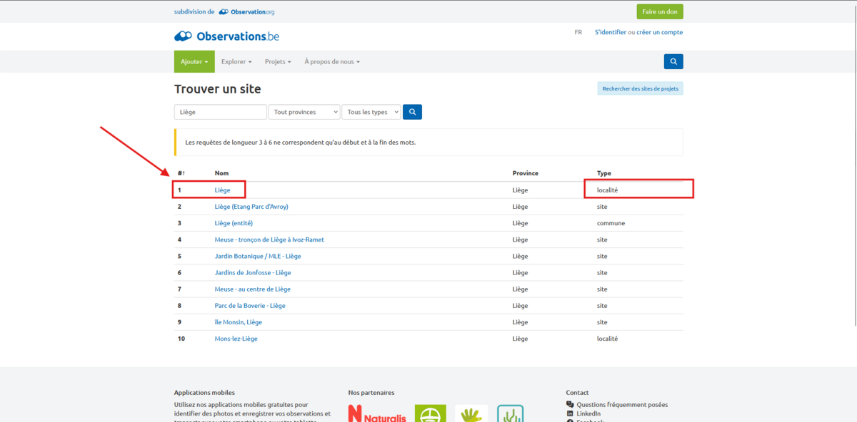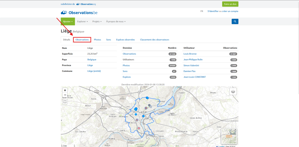 Effectuer une recherche sur observations.be
