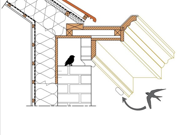- D04. Installer un nichoir ou un gîte préfabriqué sous une corniche, un débord ou une gouttière.